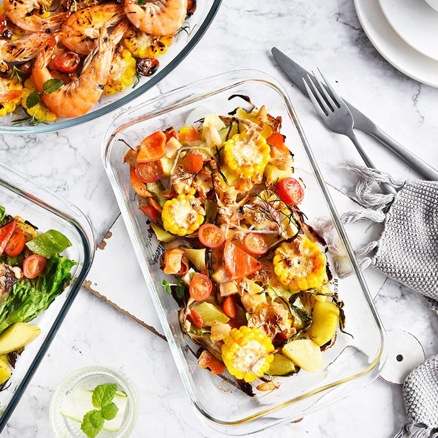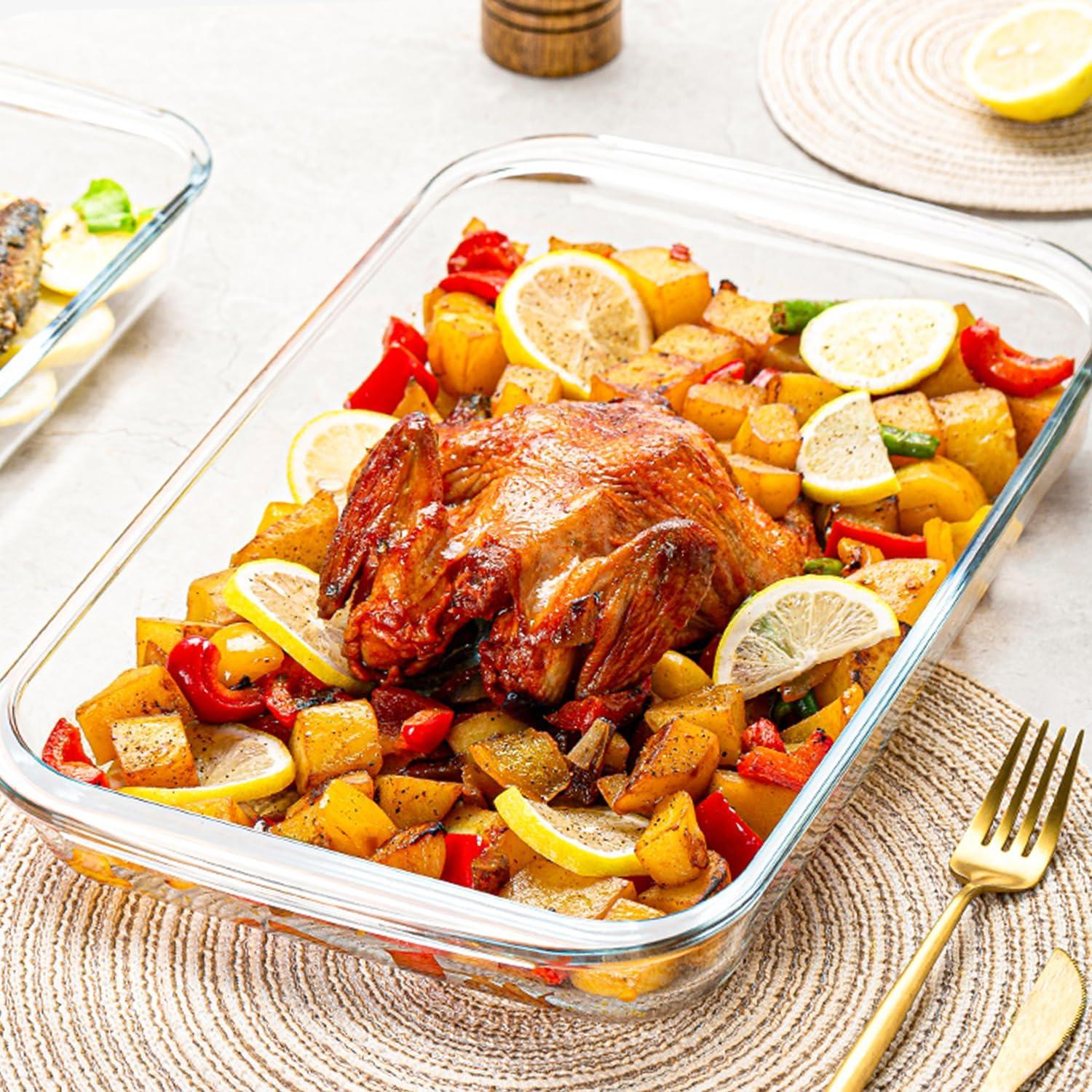 2 Pack 1-Quart Tempered Glass Oblong Baking Dishes, Personal Sized Bakeware and Cookware