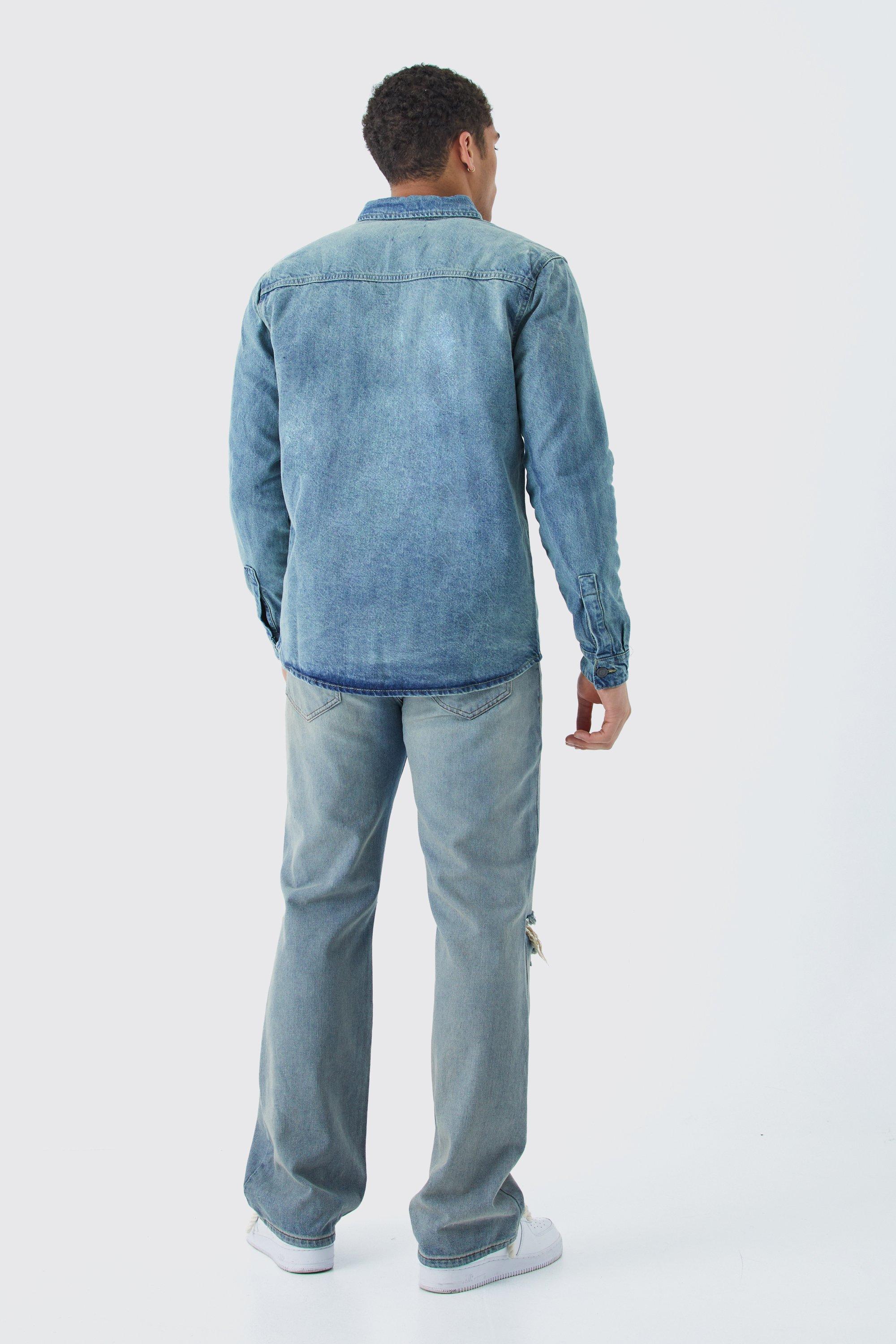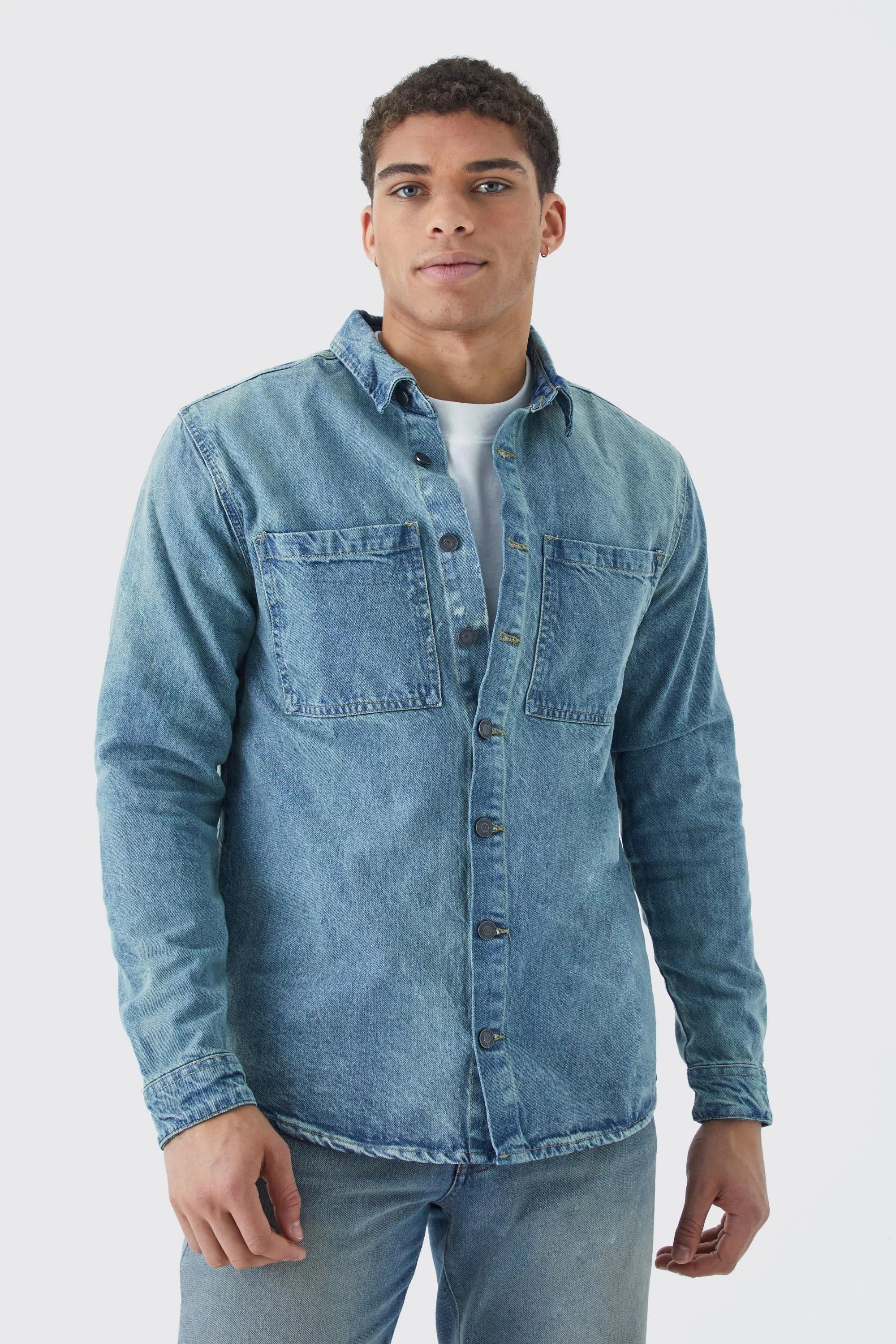 Trust us, this men's denim shirt goes with everything. Always a timeless classic, this men's jean shirt is versatile, so you can dress it up for the office and down for the boy's night out. Pair it with black jeans for a double-denim look that's edgy but not overpowering, and layer it up with a faux leather jacket. Go formal with tucked-in and a belt, or keep it casual with some chunky white sneakers. This denim shirt is made from rigid and durable material, making it a practical utility piece for every closet.
