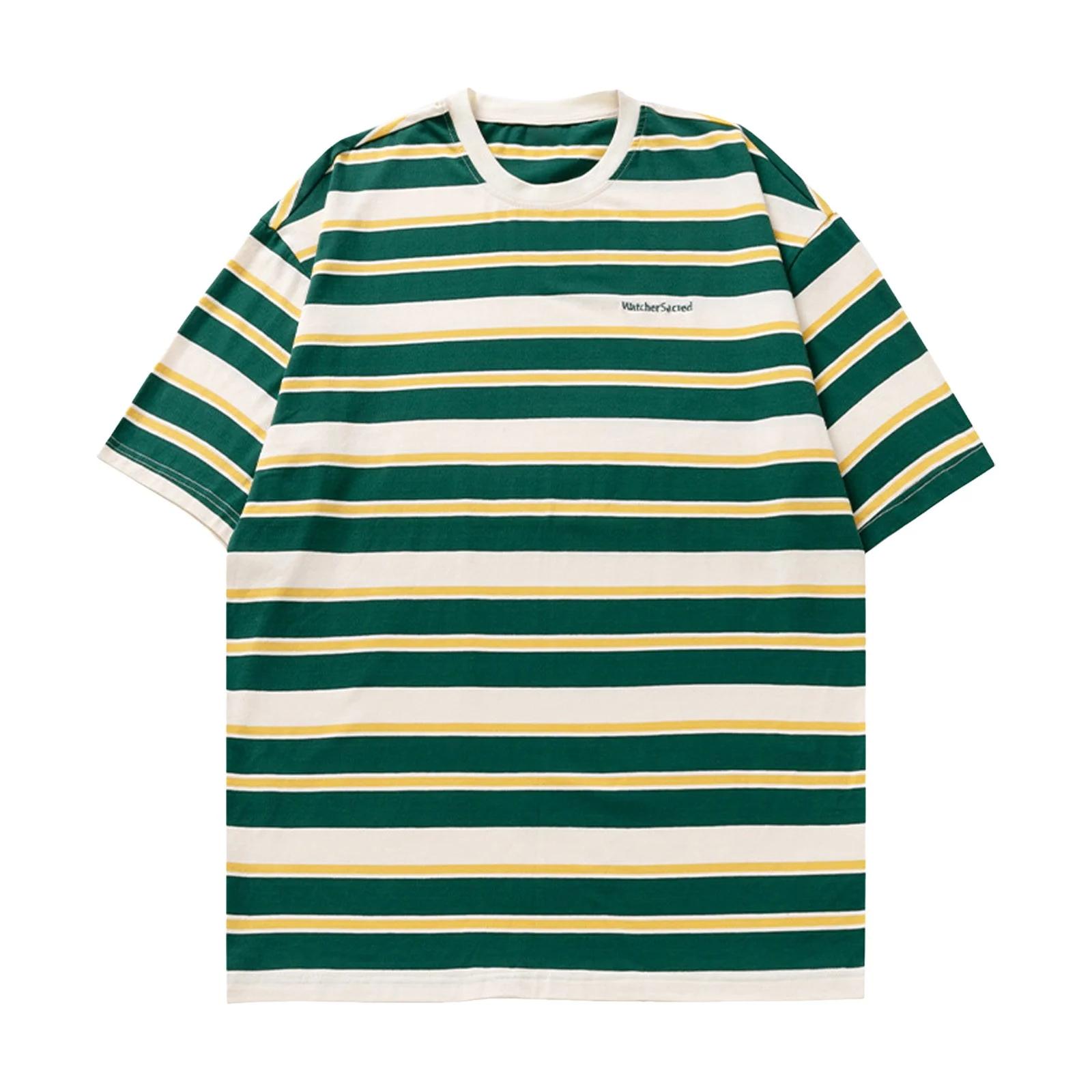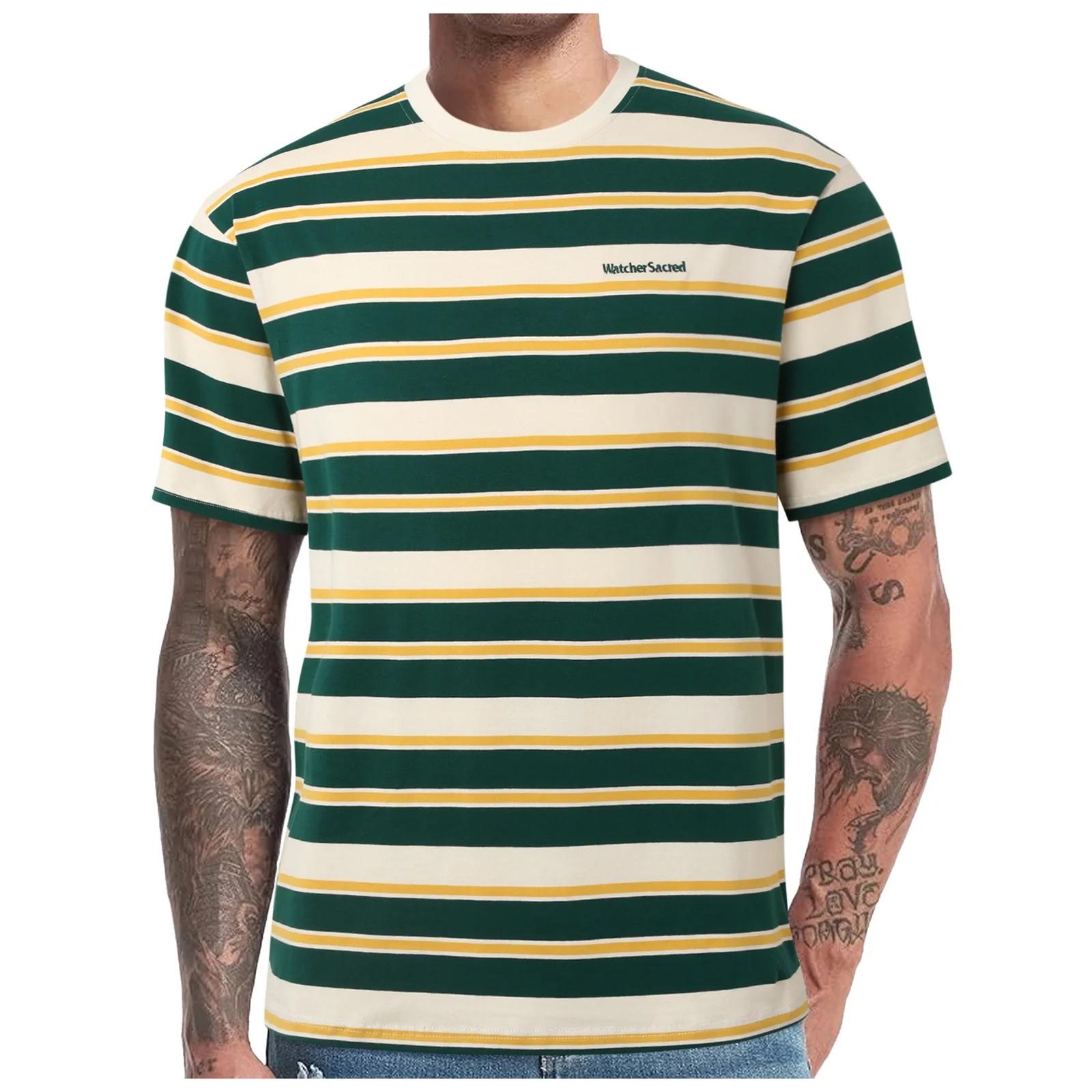 Mnyotv Tshirts Shirts for Men Men Vintage Striped Short Sleeved Summer Loose Casual T Shirt Beach Holiday T Shirt Green L