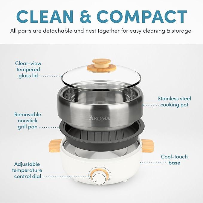 Maximize your kitchen’s potential and easily cook complete recipes with the two-in-one Aroma Hot Pot. The dual cooker only takes up a foot of counter space, so it’s easy to use and store in small apartment kitchens, tiny homes, and dorm rooms. This compact hot pot is specially designed to cook one or two servings; it’s the perfect gift for single students and couples! Stack the stainless steel hot pot on top of the controlled heat base to cook eggs, soup, pasta, vegetables, and so much more. Disclosure: We are a participant in the Amazon Services LLC Associates Program, an affiliate advertising program designed to provide a means for us to earn fees by linking to Amazon.com and Affiliate sites.