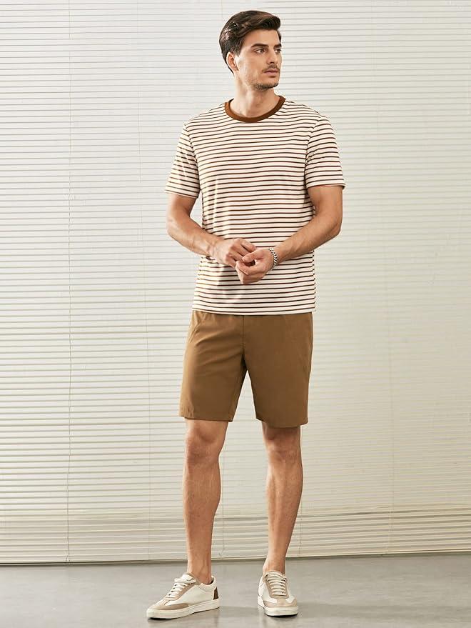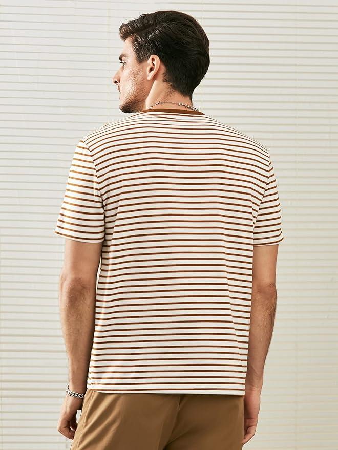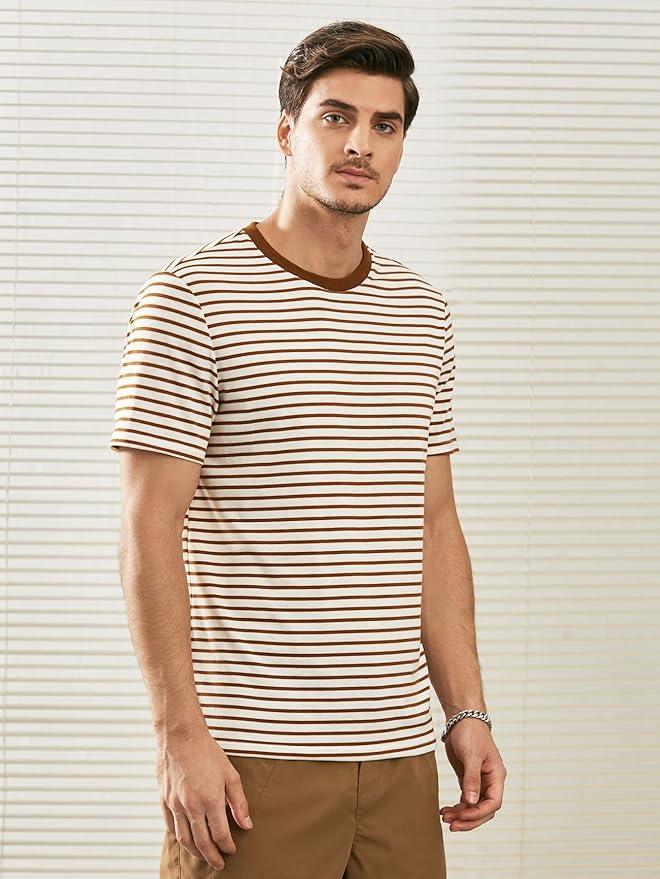 Verdusa Men's Casual Stripe Print Tee Tops Round Neck Short Sleeve T Shirt
