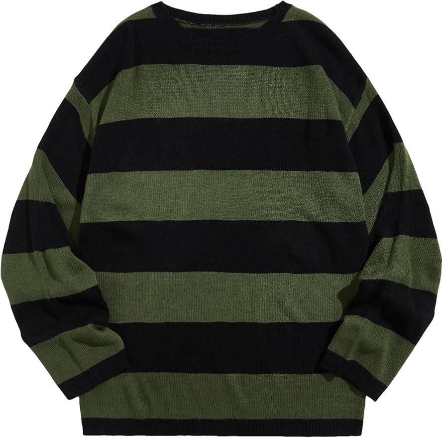 Floerns Men's Striped Pullover Sweater Colorblock Crew Neck Knit Casual Tops