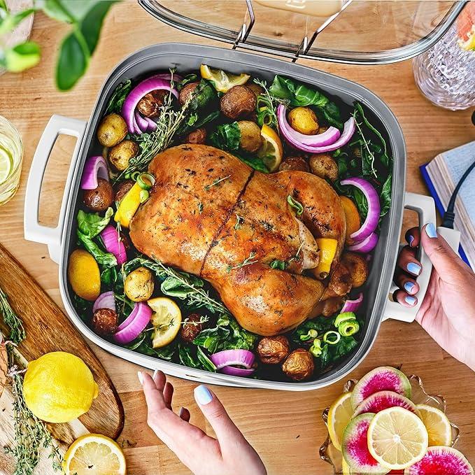 5 in 1 Electric Skillet - Expandable up to 7 Qt with Glass Lid