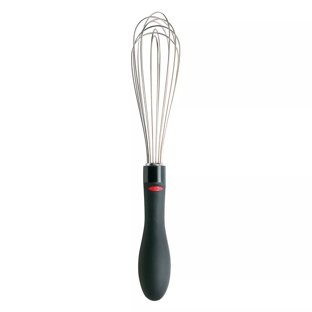 The OXO 9-Inch Whisk features a narrow profile, perfect for use in smaller containers. Beat eggs, stir batter, whip cream and stir sauces with ease. A comfortable non-slip handle offers a secure grip when wet or dry and the polished stainless steel wires won't bend or break with frequent use. The 9-Inch Whisk is dishwasher safe.