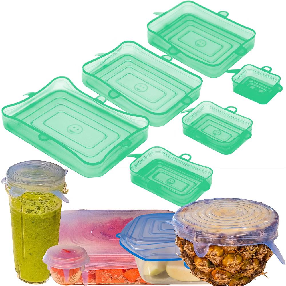 Silicone Stretch Lids, 6 Pack Reusable Lids - Versatile, Durable, and Environmentally Friendly Keep Food Fresh and Covered Our Silicone Stretch Lids are designed to keep your food fresh and securely covered. With this pack of 6 reusable lids, you can bid farewell to mismatched container lids and wasteful plastic wraps. The stretchable silicone material effortlessly adapts to various container shapes and sizes, providing an airtight and leak-proof seal. Whether it's a round bowl, square container, or even an irregularly shaped jar, our versatile lids will snugly fit and keep your food protected. Versatility and Convenience in the Kitchen Experience the ultimate kitchen companion with our Silicone Stretch Lids. Their stretchable and pliable nature allows them to conform to containers of different sizes and shapes, including bowls, pots, pans, and jars. No more struggling with ill-fitting lids or wasting time searching for the right cover. Our Silicone Stretch Lids adapt to your needs, ensuring a secure and snug fit every time. They are microwave-safe, allowing you to conveniently heat or store food. Cleaning is a breeze with their dishwasher-safe feature, making maintenance effortless. Sustainable Choice for a Greener Future Make an environmentally friendly choice with our reusable Silicone Stretch Lids. By eliminating the need for single-use plastics and disposable wraps, you contribute to reducing waste and protecting the planet. Crafted from premium silicone, these lids are tear-resistant, heat-resistant, and built to last. They provide a secure seal, preventing leaks and spills, and preserving the flavor and freshness of your food. Upgrade your food storage routine with our Silicone Stretch Lids, the durable, versatile, and eco-conscious solution.