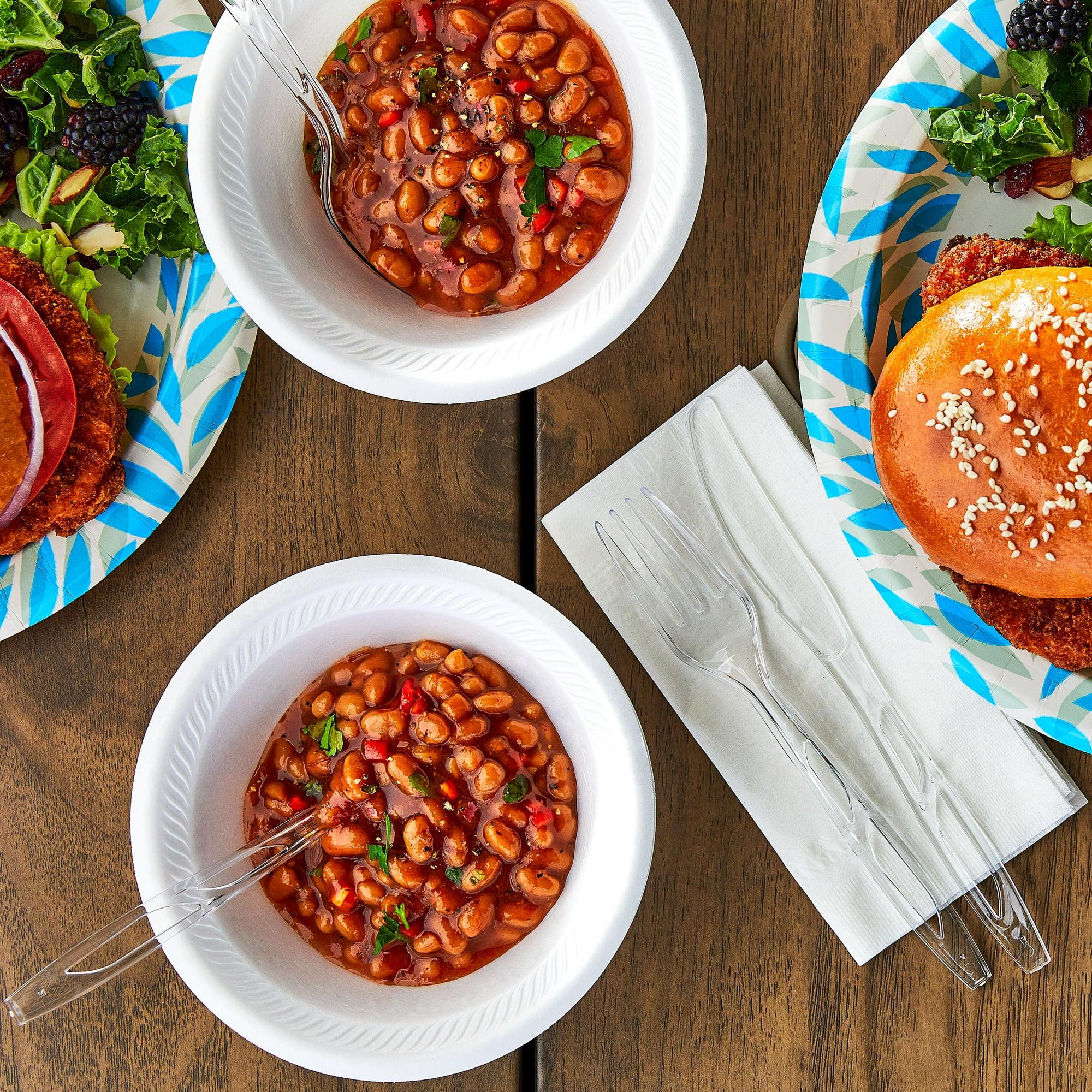 Great Value Everyday Clear Assorted Cutlery, 48 Count Assorted 48 count disposable clear plastic cutlery set 16 forks, 16 knives and 16 spoons BPA-free Easy on-the-go packaging Reliably strong Great for any event or meal