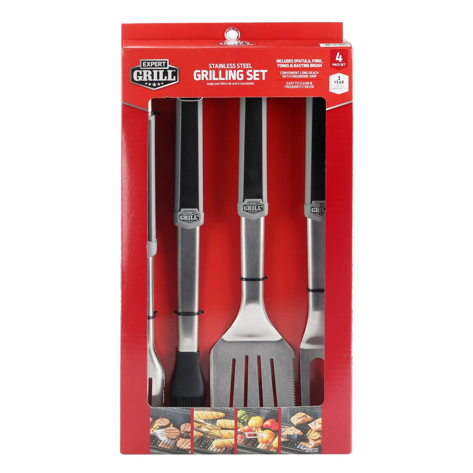 Expert Grill Stainless Steel BBQ Tool Set with Soft Grip, 4-Pieces