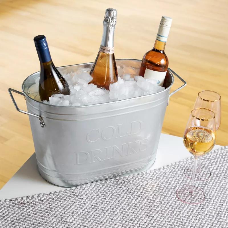 Twine Insulated Drink Beverage Tub - Galvanized Metal Ice Buckets for Beer and Beverage Holds 5.35 Gallons