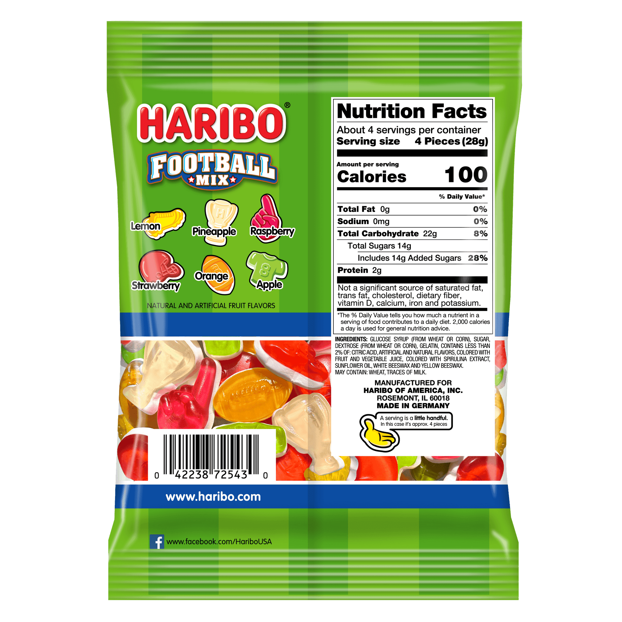 There's nothing like the fun of having friends over to watch Football. New HARIBO Football Mix gummies create childlike happiness with fun football themed shapes that are perfect to share during game day. The mix comes in six delicious flavors and different shapes that are all related to football. 1 Regular 4 oz Package Delicious Gummy Candy