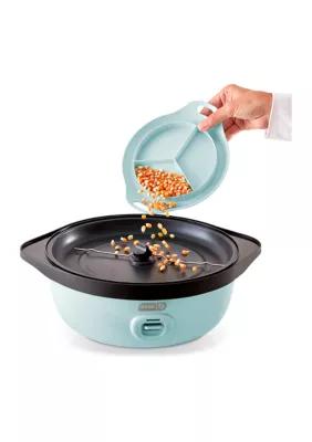 Make up to 24 cups of fresh, buttery popcorn with the Dash SmartStore Stirring Popcorn Maker! Pop popcorn without having to heat the stove with the Stirring Popcorn Makers one-touch power: just add kernels, a little oil, and press the Power Button! Perfect for enjoying movie-theater-style popcorn, the Bowl of the SmartStore Popcorn Maker lets you watch the popcorn popping. and also doubles as a serving dish. With the included Measuring Cup, youll always make just the right amount for friends and family. The SmartStore design makes it so the lid and base stack together, taking up less space in your cabinets. Get started enjoying delicious homemade popcorn right away recipes included! Features: Make delicious homemade popcorn with the Dash SmartStore Stirring Popcorn Maker. Makes up to 24 cups of fresh, movie-theater style popcorn. Clear Bowl makes it easy to flip & serve right away. Measuring Cup built into the lid, portioned to make 8, 16, or 24 cups of popped kernels ,so you can always cook the perfect amount. Stirring Bar ensures kernels pop thoroughly, and the Popcorn Maker works with any size kernels! Cover with vents doubles as a butter melting tray that adds butter as you cook. Its so easy: Just add oil, kernels, and press the Power Button! Base of the Popcorn Maker nests inside the lid for compact storage. Includes: Dash SmartStore Stirring Popcorn Maker, Measuring Cup and recipe guide. 1-year manufacturer warranty, 2-year warranty available with registration to the Feel Good Rewards program. Designed in NYC. US-Based Customer Support available. DSSP300 | Dash SmartStore Stirring Popcorn Maker