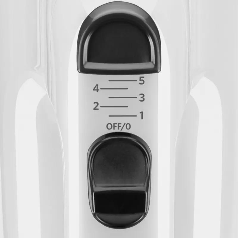 Compact, lightweight and great for your everyday mixing needs. This hand mixer features 5 speeds, 2 Turbo Beater Accessories and the power and control to mix up your favorite cookie dough, mashed potatoes and so much more. Slowly stir in chunky ingredients, like nuts or chocolate chips, at speed one or whip egg whites or heavy cream at speed five.