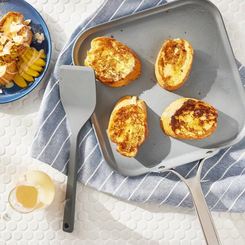 Make a versatile addition to your everyday kitchenware with this Silicone Solid Turner from Figmint™. Designed in gray, this solid silicone turner is built to last and easy to maintain thanks to its dishwasher-safe construction. The turner resists heat up to 450 degrees Fahrenheit, and the soft-grip ergonomic handle makes it comfortable to maneuver as you cook. Plus, a hanging hole in the turner's handle allows you to hang it from a hook or peg for space-saving storage.