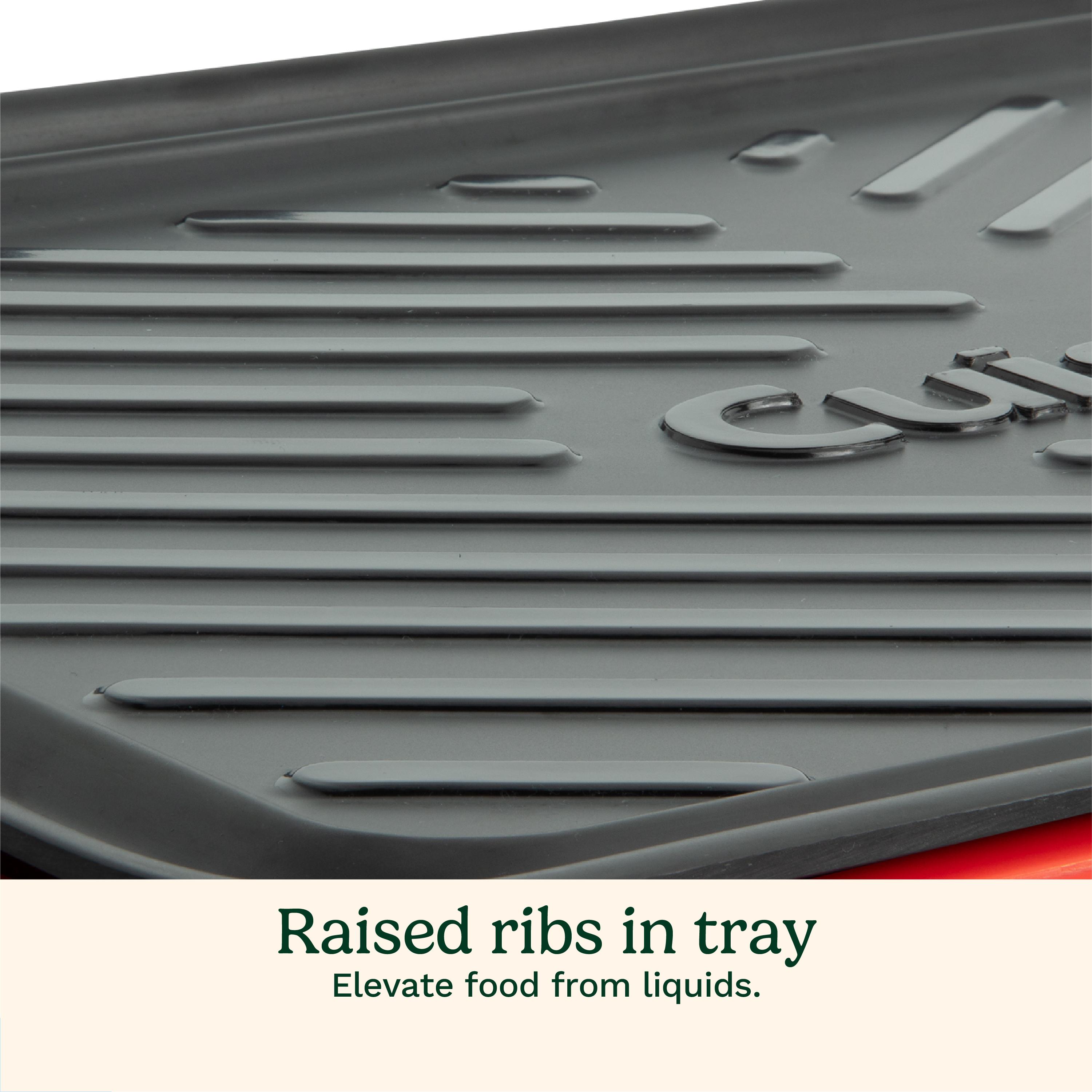 Streamline your grilling process and ensure food safety with the Medium Cuisinart Grilling Prep and Serve Melamine Trays. These trays take the hassle out of grilling with a two-tray system designed for safety and convenience. Use the red tray to prep and transport raw meat, then switch to the black tray for serving cooked food—keeping cross-contamination off your menu. Made from durable, shatter-resistant melamine, these lightweight trays are perfect for handling up to 20 lbs., whether it's a whole chicken or a platter of barbecue favorites. The trays nest together for compact storage, are dishwasher safe for quick cleanup, and remain cool to the touch, ensuring a smooth transition from grill to table. Sleek, functional, and tailored small-group grilling, these trays are a must-have for barbecue enthusiasts. | Cuisinart Grilling Prep and Serve Trays