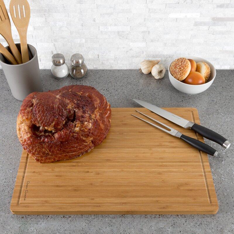 This stylish Extra Large Bamboo Cutting Board by Classic Cuisine lets you easily chop, prep, and serve any meal or appetizer while maintaining an eco-friendly and sustainable kitchen.