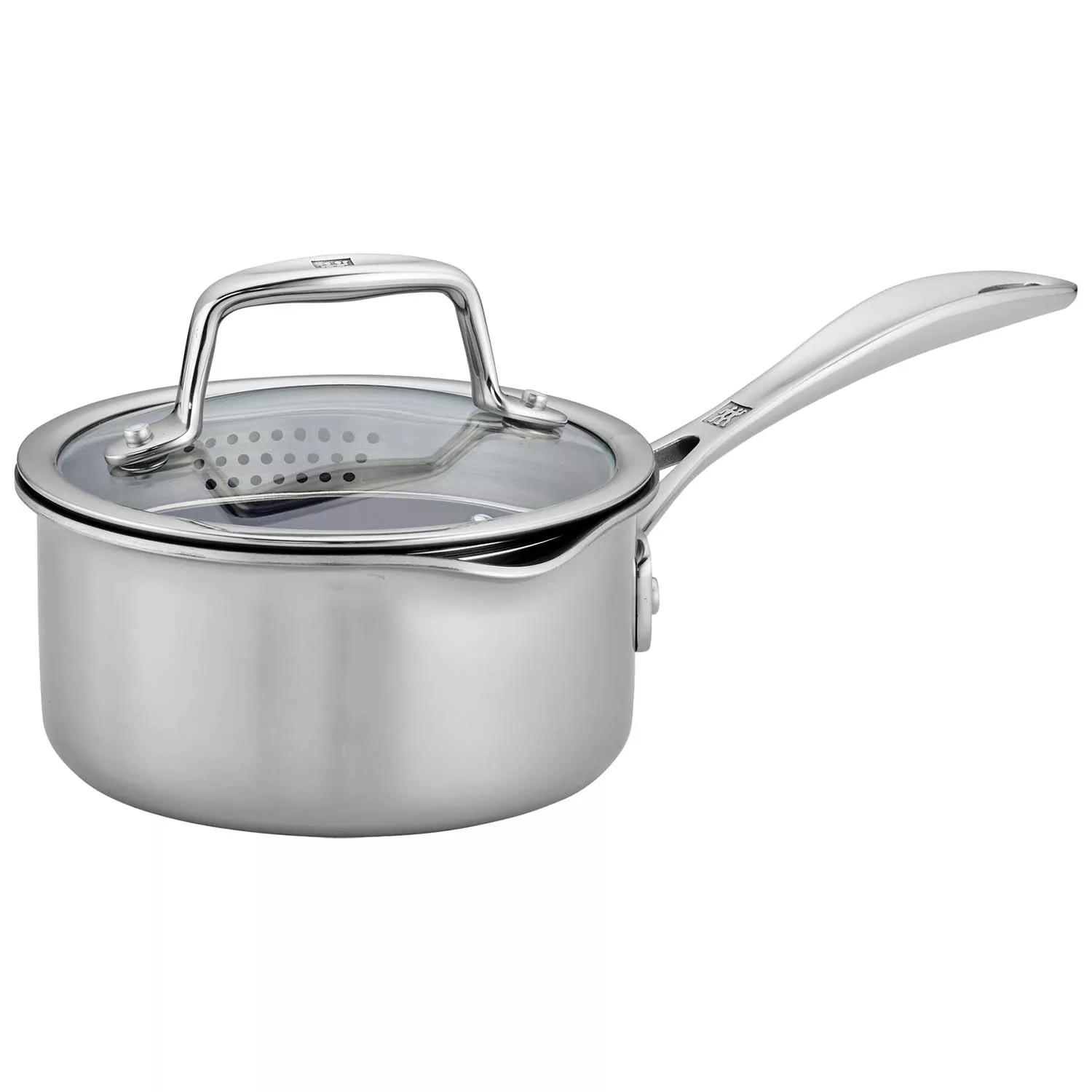 Cook oatmeal, simmer soups, boil potatoes and much more in this versatile saucepan by Zwilling. Encapsulated by shiny stainless steel, the sturdy, 3mm clad construction features an aluminum core that heats up evenly and quickly.