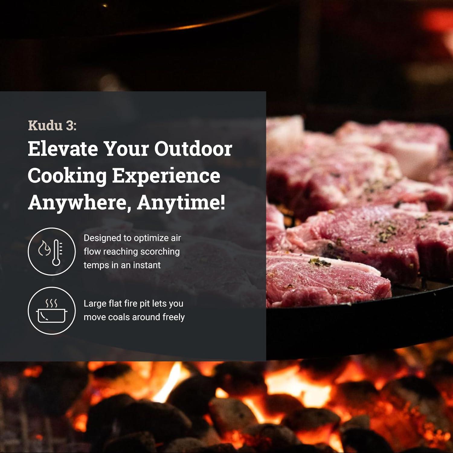KUDU 3 Grill - Open Fire BBQ Grilling System, Portable Charcoal Grills