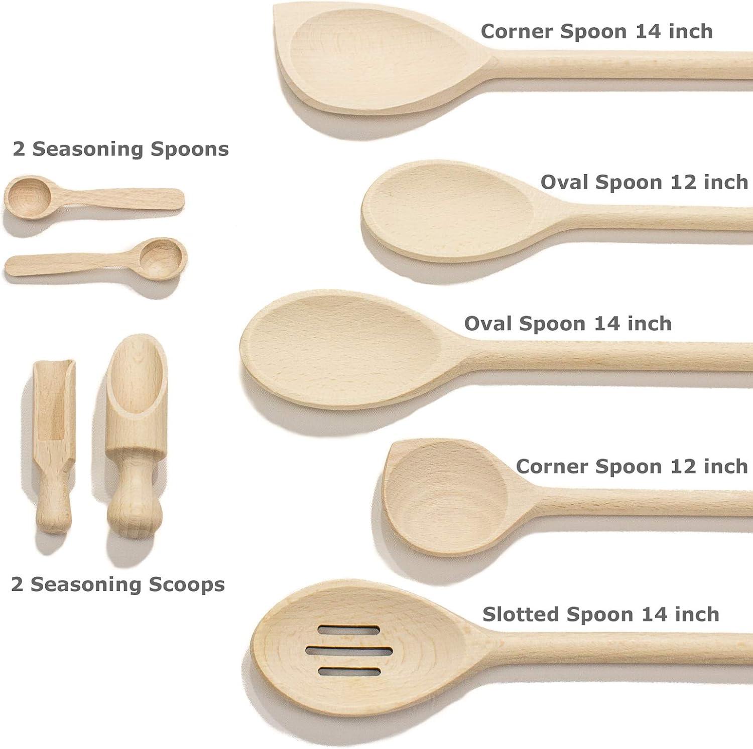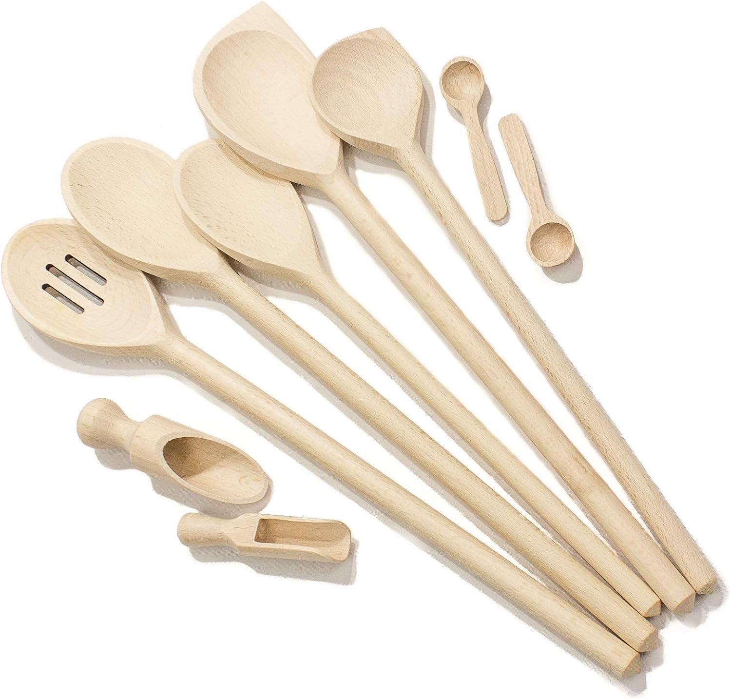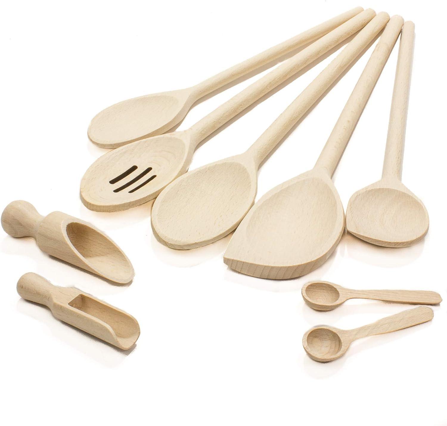 Spoons & Scoops, 9 piece raw wooden spoon set, CookWood brand