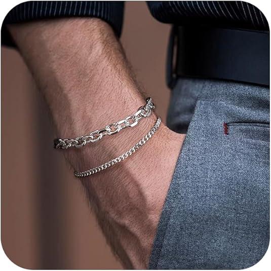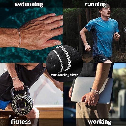 MBW Silver Bracelets for Men, 925 Sterling Silver Chunky O-Linked Chain Thin Cuban Mens Silver Bracelet Set 6.5/7/7.5/8/8.5/9 Inches Silver Charm Bracelet jewelry Gifts for Men