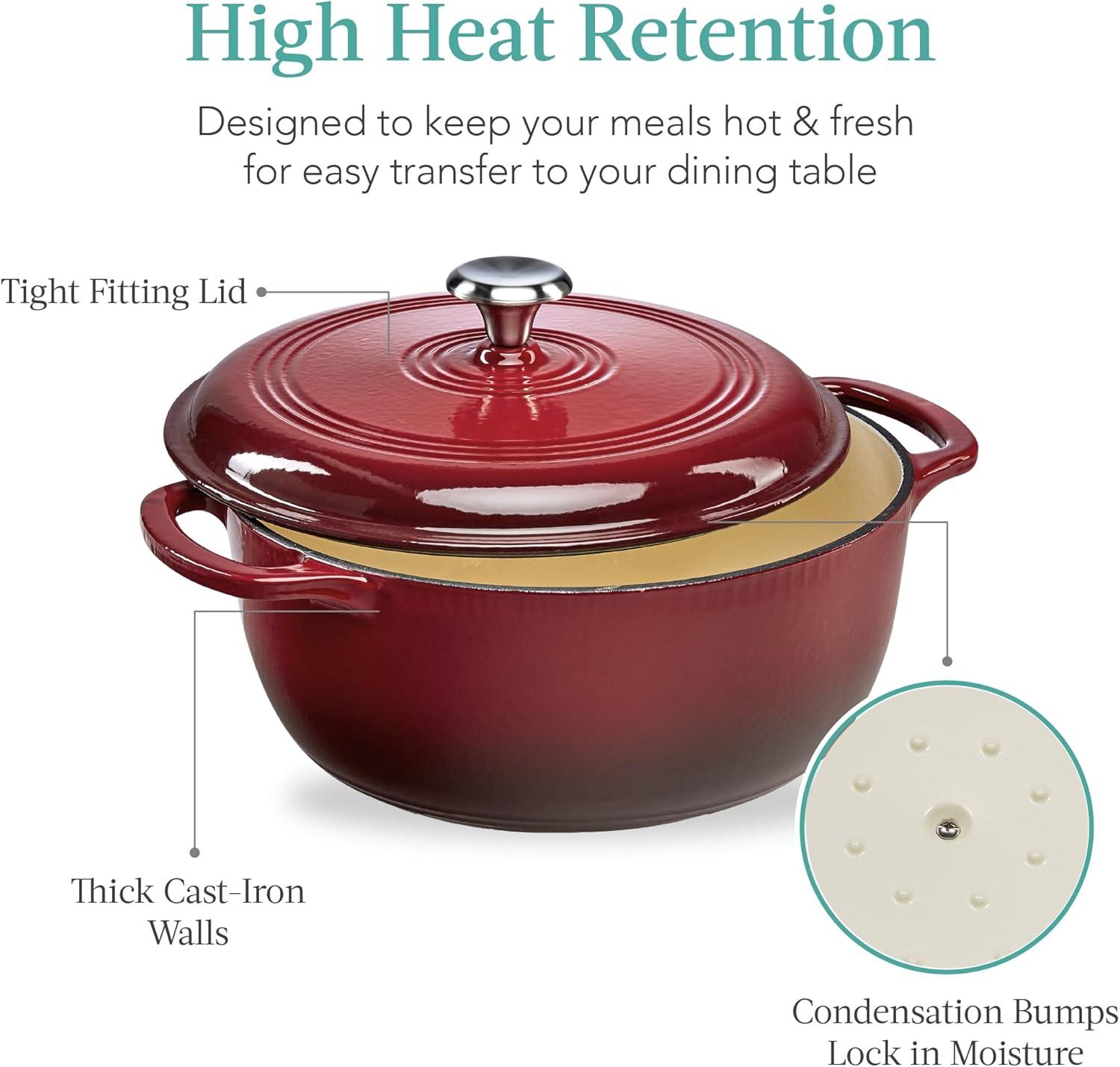 HEAVY-DUTY DESIGN: Thick cast iron is set with a glossy exterior finish and an enamel interior to combine lasting quality with easy upkeep. Disclosure: We are a participant in the Amazon Services LLC Associates Program, an affiliate advertising program designed to provide a means for us to earn fees by linking to Amazon.com and Affiliate sites.