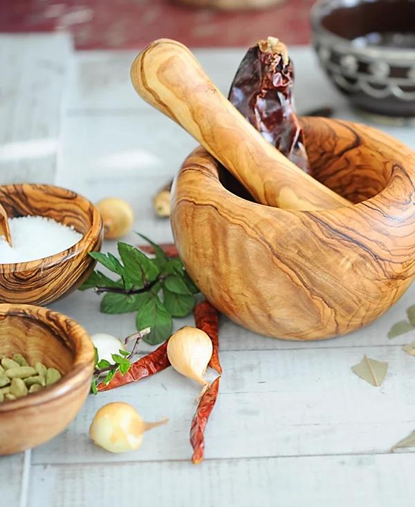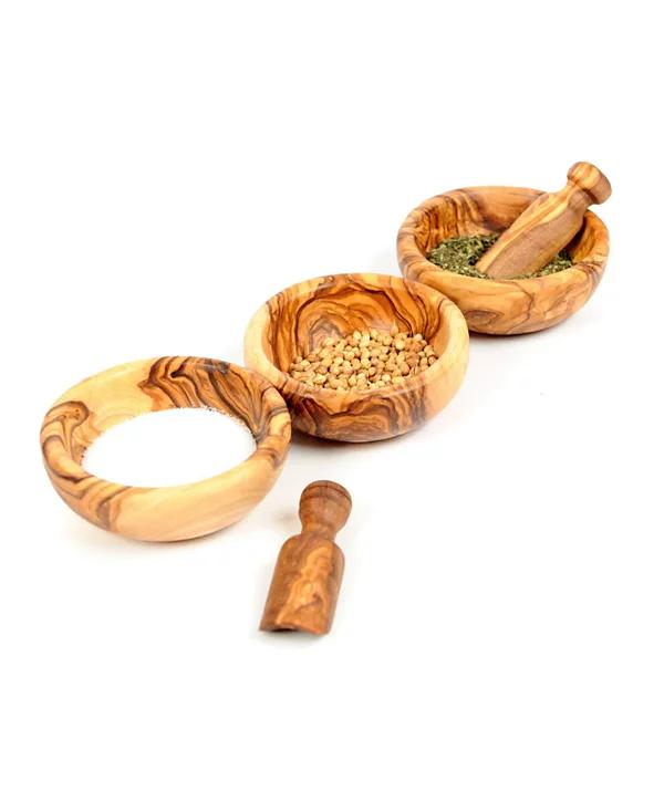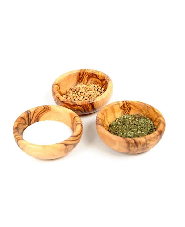 These olive wood spice bowls have many uses. As the name ensues, would be for holding spices. This is handy for measuring out ingredients in advance when making a recipe and holding the spices you need in the wooden bowl. Also used for serving salt and pepper around the dinner for authentic feel.
