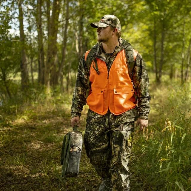 Safety is the number-one priority when hunting, which makes the Mossy Oak Blaze Orange Adult Hunting Vest an ideal choice to wear over your existing hunting apparel. Whether you’re hunting pheasants in South Dakota or whitetails down south, this vest will help you stand out in the eyes of other hunters as you flush roosters or sit in a treestand over a food plot. Two front cargo pockets allow you to carry essentials within convenient reach, and the zippered front closure provides easy on and off wearability.
