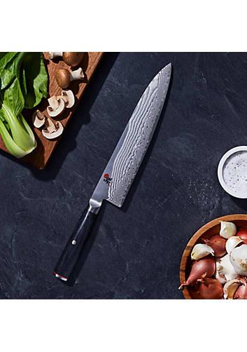 The chef knife is an all-rounder tool for food prep. Revolutionary FC61 steel core with fine carbide distribution. Protected by a durable 48 layers of Damast steel. Fine carbide distribution creates a razor sharp and durable blade. FRIODUR ice-hardened blade with 60 Rockwell hardness. Blade is hand-honed using using historic Honbazuke method. Exceptionally sharp 9.5 to 12-degrees. Authentic thin Japanese blade profile. Ergonomic handle made of black pakkawood. Rounded bolster for increased comfort and balance. Recommend hand wash.
