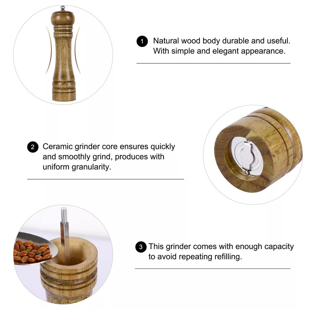 Unique Bargains Wooden Home Kitchen Hand Crank Twist Salt Spice Container Mill Grinder Shaker Bronze Tone